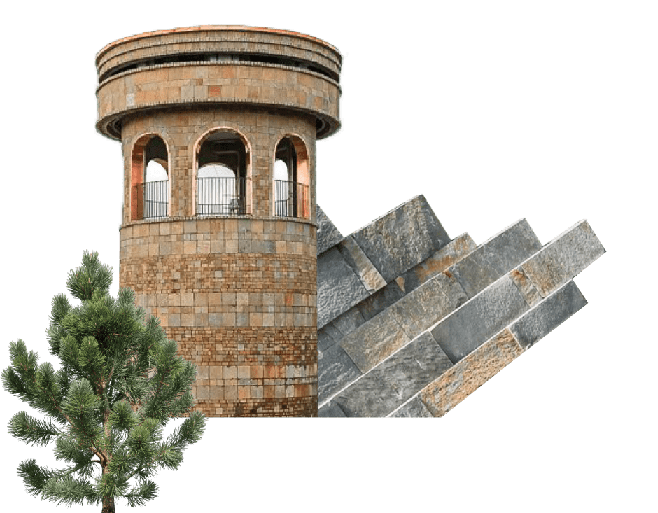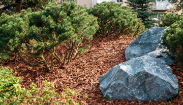 защитой от шума города, огромные каменные валуны, имитирующие горный пейзаж.