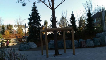 Посажены живые кустарники и деревья – представители сибирской тайги.