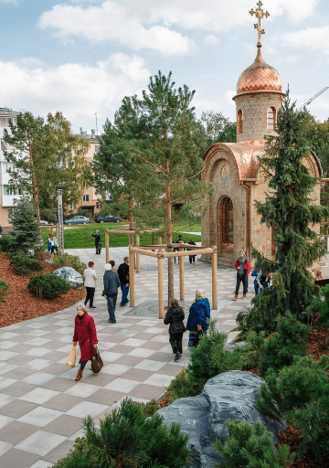 Часовня расположена подальше от суеты центральной площади парка. Здесь можно постоять, помолчать, поставить свечи в память о погибших.
